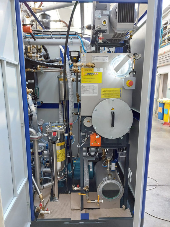 Una bomba de paletas de altas prestaciones mantiene toda la máquina al vacío, aumentando éste en la cabina en la operación de secado para garantizar el mismo.